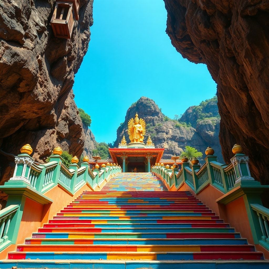 • Visit the colorful staircase and temple at Batu Caves
